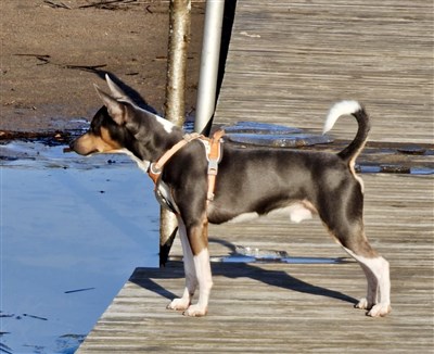 Han är en Ratterrier, vilket är ursprungsrasen till AHT, och vi har dispans från SKK at använda dem i AHT-avel för att bredda avelsbasen.