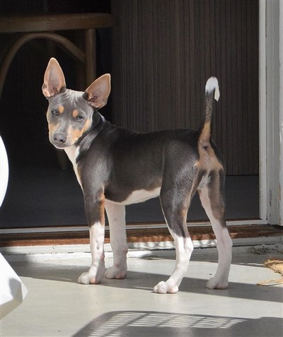 Han är en Ratterrier, vilket är ursprungsrasen till AHT, och vi har dispans från SKK at använda dem i AHT-avel för att bredda avelsbasen.