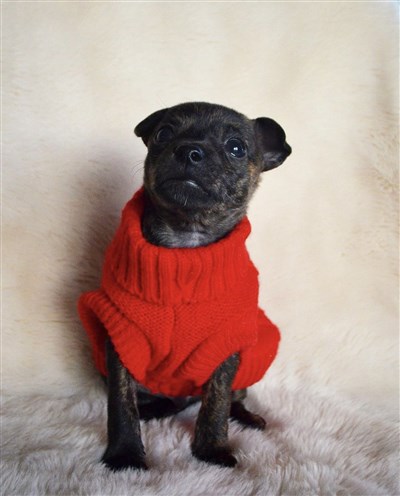 Brindle, samt svarta m vita tecken på bröst & tassar